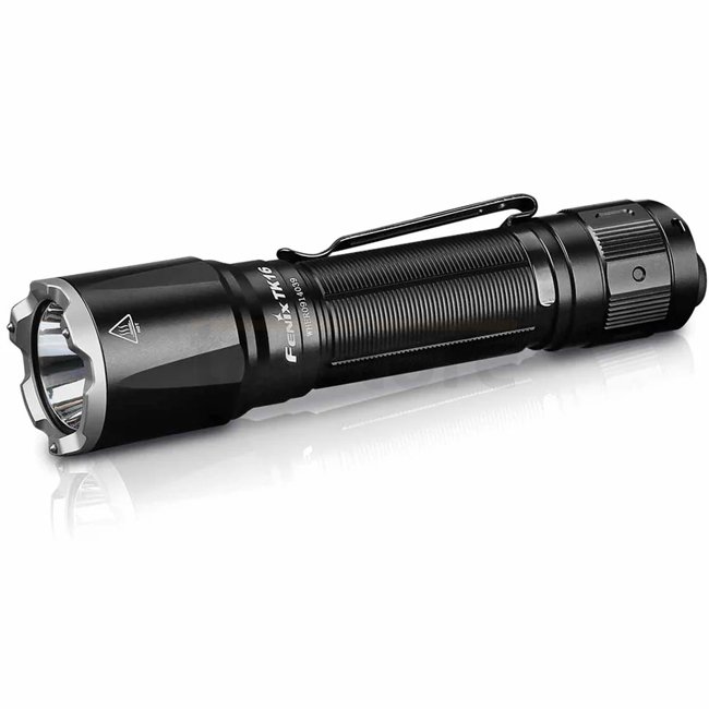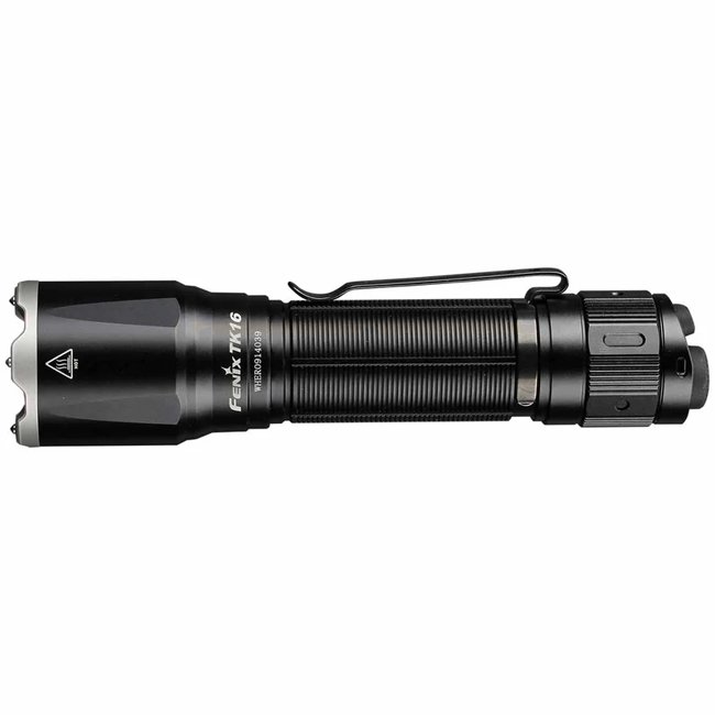 La Fenix TK16 V2.0 délivre jusqu’à 3 100 lumens avec une portée de 380 mètres. Elle utilise une batterie 21700 Li‑Ion avec recharge USB‑C intégrée et possède deux interrupteurs à l’arrière pour un accès rapide et le choix des modes.