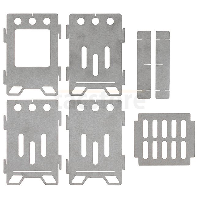 approprié pour des combustibles solides à ranger économisant l'espace, ultra-léger montage simple avec système d'imbrication ventilation optimale pour effet de cheminée fixable au sol par p.ex. sardines 3 panneaux latérals, 1 panneau frontal, 1 plaque de fond, support poêle en 2 parties, sac de transport avec velcro Dim. d'emballage: ca. ca. 17 x 13,5 x 0,5 cm Dim. assemblées: ca. 13 x 10 x 10 cm Poids: ca. 130 g