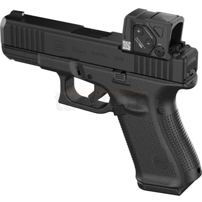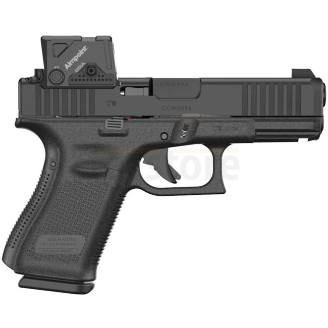 Le GLOCK 19 Gen5 A-CUT™ COA™ Combo associe le pistolet G19 Gen5 fiable avec le viseur point rouge Aimpoint™ COA™. Ce modèle compact offre une capacité de chargeur élevée et une ergonomie améliorée. Grâce à l'interface Aimpoint A-CUT™, le viseur COA™ est monté directement sur la culasse sans adaptateur, garantissant une configuration basse et stable.