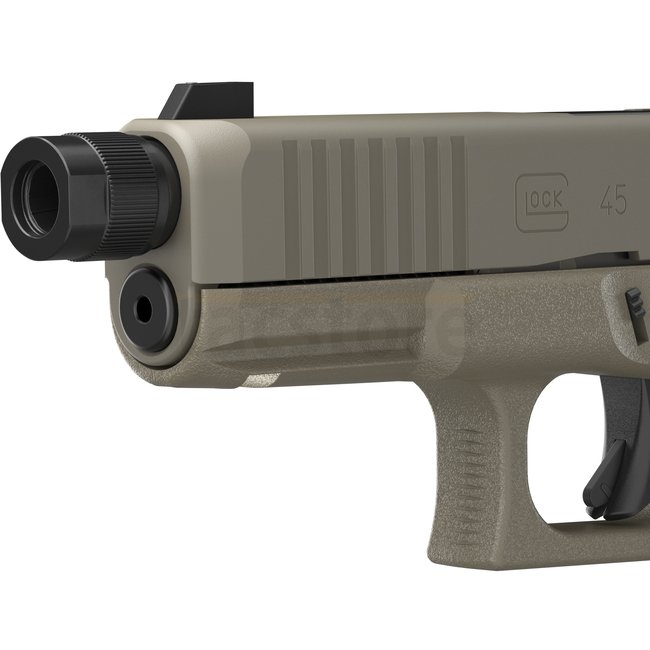La Glock 45 MOS Hunter Edition comprend des caractéristiques telles qu'un clip de lanière, un bouton de déverrouillage du chargeur réversible et prolongé, des viseurs avant et arrière en acier, un levier de déverrouillage de la glissière ambidextre et prolongé, un chargeur avec plaque de fond prolongée, une plaque de recouvrement pour armement et un canon fileté. Ces améliorations, combinées à l'optique COA et à la lampe tactique GTL II, augmentent sa polyvalence pour diverses applications, y compris la chasse et l'utilisation tactique.