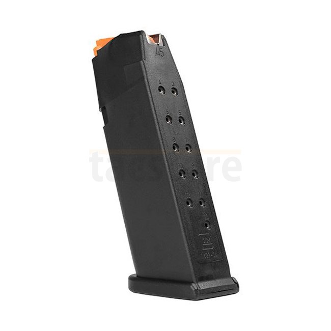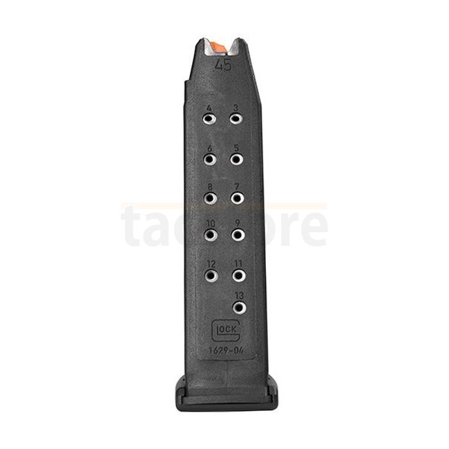 Améliorez votre Glock 21 Gen5 avec ce chargeur de 13 coups, doté d'un suiveur orange haute visibilité pour des performances fiables lors des sessions de tir.