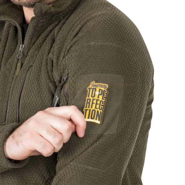 Veste en polaire légère et durable avec coudières et épaules renforcées. Dispose de cinq poches extérieures zippées, y compris des poches sur les biceps et la poitrine avec œillet pour câbles. Cordon de serrage en bas et poignets élastiques pour un ajuste