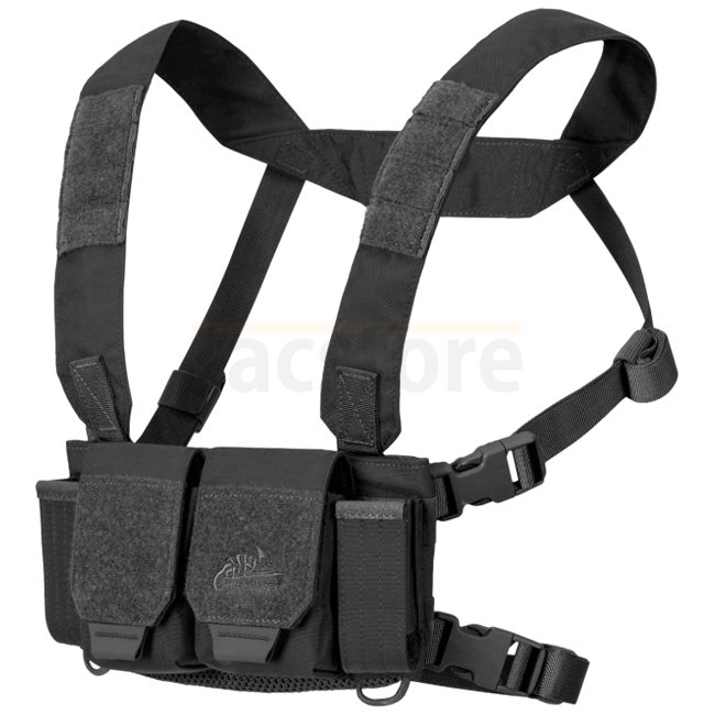 Tenue de compétition Helikon-Tex MultiGun en noir, comprenant une ceinture modulaire et un micro harnais de poitrine pour une polyvalence ultime.