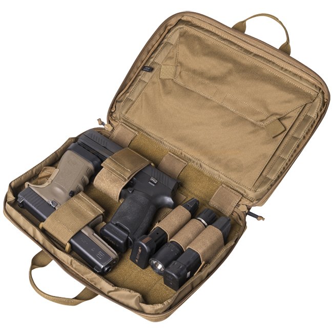 Portefeuille double pour pistolet de style militaire Helikon-Tex en Olive avec tissu Cordura, panneau d'identification Velcro, fermeture éclair YKK. Taille : 325 x 230 x 35mm, Poids : 555g. Accessoires dans les images non inclus.