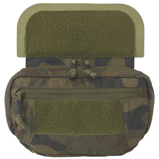 Le Dangler Guardian Helikon-Tex - PL Woodland est un accessoire polyvalent pour le gilet porte-plaque Guardian, offrant un espace de rangement supplémentaire pour les accessoires essentiels. Facilement attachable avec un système à trois points, cette poch