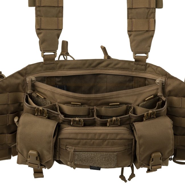 Le Helikon-Tex Guardian Recce Chest Rig est un gilet thoracique léger et polyvalent conçu pour les opérations tactiques et les activités de plein air. Il comprend quatre poches principales pour chargeurs compatibles avec les chargeurs AR/AK, ainsi qu'un espace de rangement supplémentaire pour le petit matériel comme les outils, les cartes, les radios et autres équipements. La sangle compatible MOLLE des deux côtés permet une personnalisation supplémentaire. Les bretelles et les sangles réglables à la taille offrent un ajustement confortable et vous permettent de porter le gilet thoracique seul ou par-dessus un gilet pare-balles. Il est idéal pour les chargements de reconnaissance, permettant un accès facile à l'équipement essentiel dans les situations dynamiques.