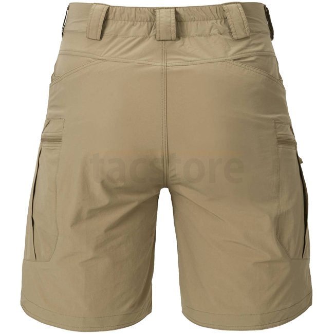 Shorts tactiques d'extérieur Helikon-Tex OTS 8,5 Lite légers et respirants en Sky écarlate et noir. Fabriqués en tissu nylon VersaStretch Lite avec un espace de rangement efficace, poches en mesh pour éviter l'accumulation de poussière, et idéaux pour les