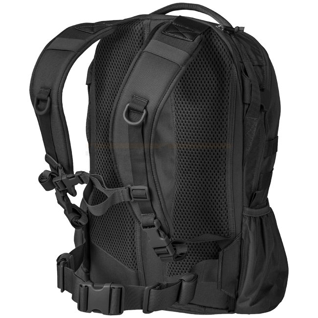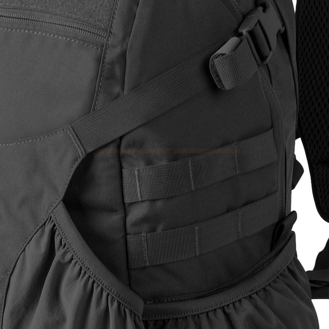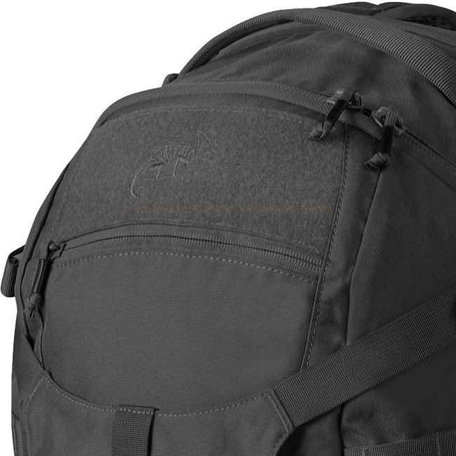Sac à dos Helikon-Tex Raider en noir, fabriqué en tissu Cordura avec un système de port confortable, un panneau d'identification Velcro, des bretelles anatomiques, un système MOLLE/PALS, et des fermetures éclair YKK. Comprend un compartiment principal dou