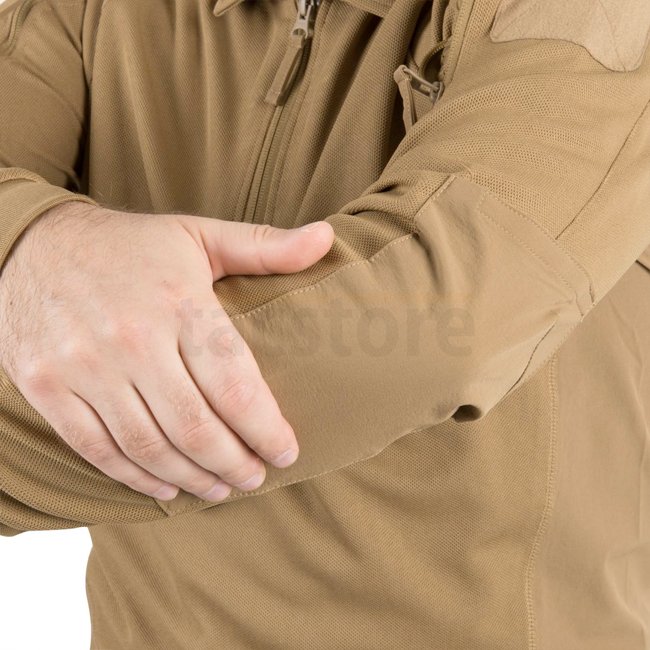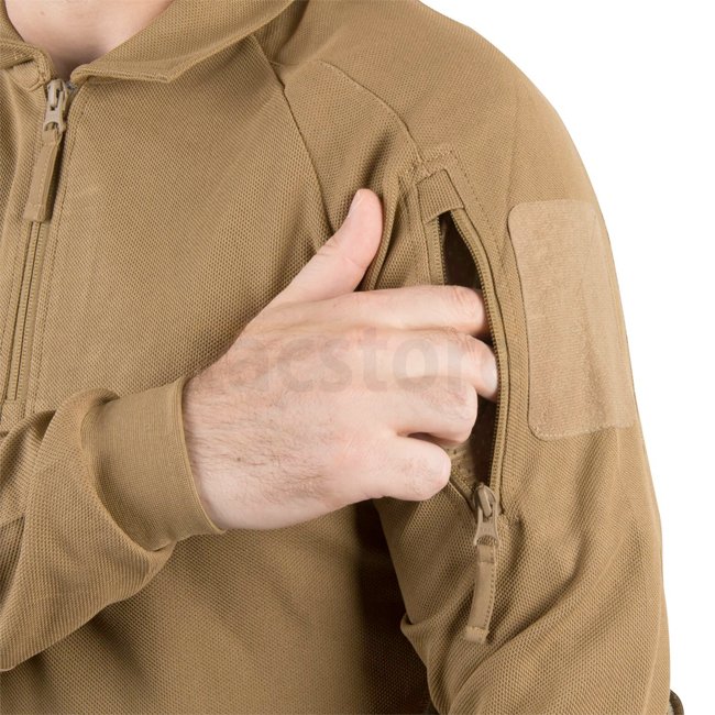 Polo Helikon-Tex Range en noir, taille M, parfait pour l'utilisation au stand de tir. Tissu à séchage rapide avec panneaux latéraux VersaStretch, poches internes pour inserts de protection, poches zippées sur les manches, boucle pour lunettes de soleil et