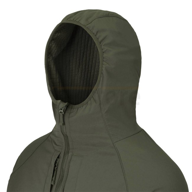 Veste Softshell Hybride Urbaine Helikon-Tex en Gris Ombre XS. Élégante, durable et résistante aux intempéries. Dotée d'une fermeture éclair YKK, d'une capuche avec bord élastique, de renforts au niveau des coudes et de plusieurs poches zippées. Poches inf