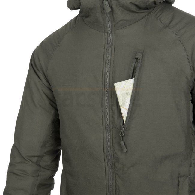Hoodie Helikon-Tex Wolfhound Climashield - Alpha Green - 2XL : Veste légère et compressible avec rembourrage Climashield Apex et plusieurs poches zippées.