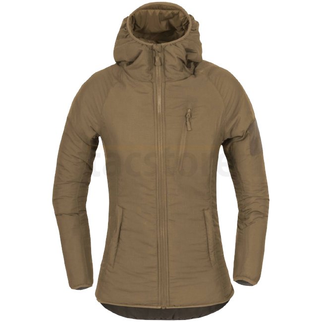 Restez au chaud et stylish avec la veste à capuche Wolfhound pour femmes de Helikon-Tex en motif Tiger Stripe. Légère et isolée, cette veste est dotée d'une couche de protection DWR, d'une isolation en Climashield Apex et d'un tissu en nylon résistant au