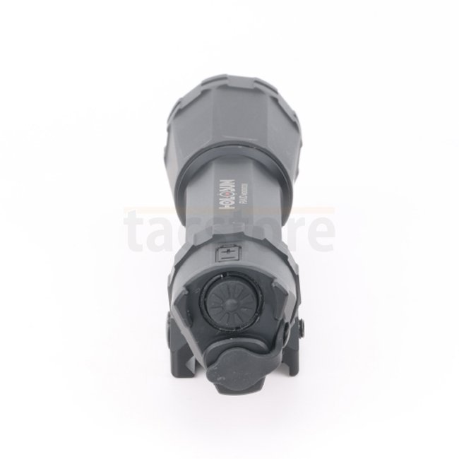 L'appareil comprend des supports pour les systèmes Picatinny et M-LOK, offrant une flexibilité d'installation. Les utilisateurs peuvent activer la lumière en utilisant le bouton de capuchon arrière intégré ou l'interrupteur à distance compact inclus.