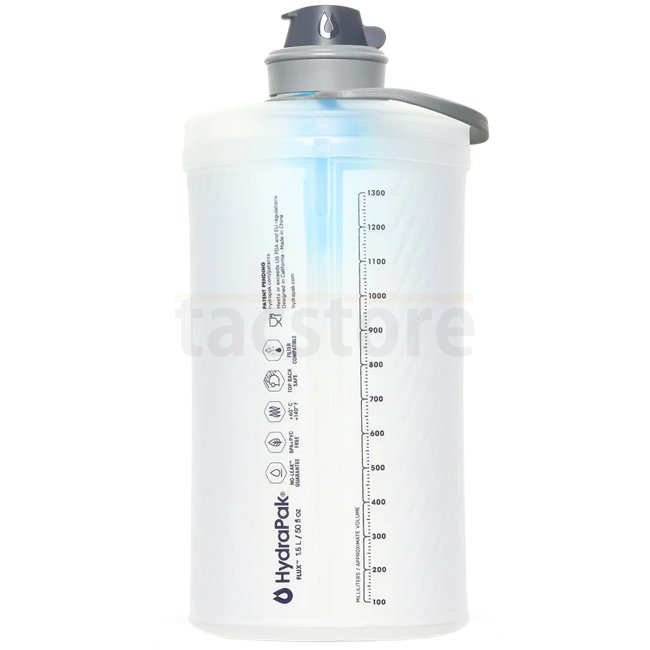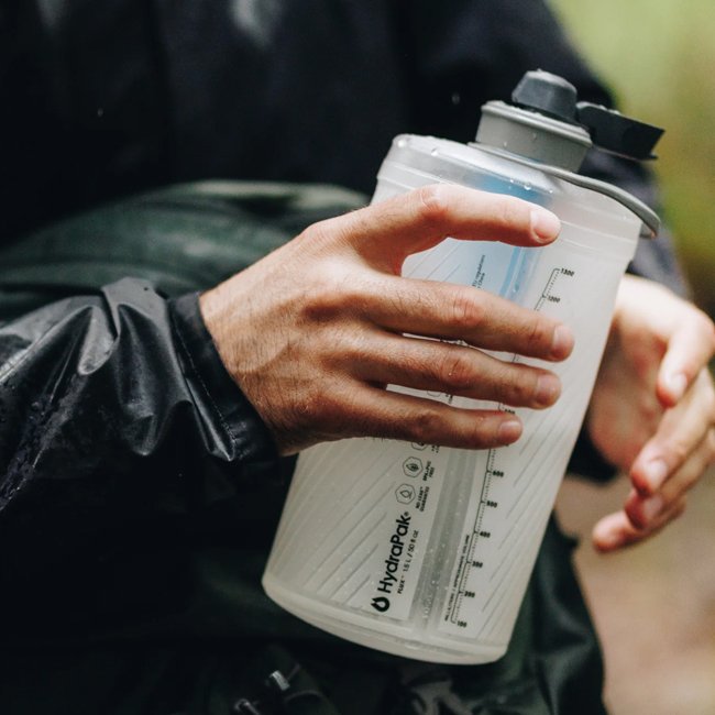 Avec l'HydraPak Flux+ 1,5 L, vous pouvez garantir l'accès à de l'eau potable partout. Le filtre intégré élimine les bactéries et les protozoaires jusqu'à 1 500 litres d'eau et filtre à un débit supérieur à 1 litre par minute. Il suffit de rouler ou de presser le Flux pour filtrer l'eau dans d'autres récipients de camping, ou de boire de l'eau fraîchement filtrée en déplacement.