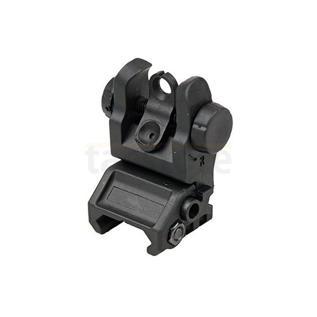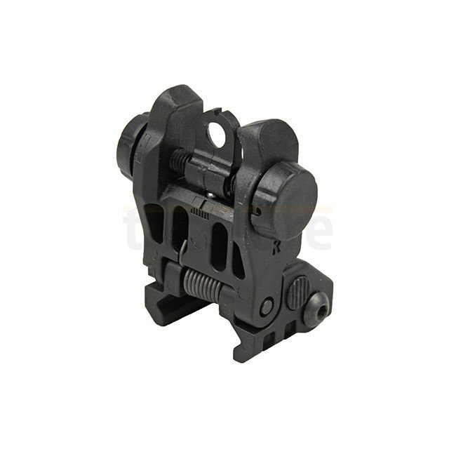 Visée arrière en polymère de haute qualité IMI Defense en noir. Moulé par injection pour la durabilité et testé pour répondre aux normes IMI Defense. Compatible avec les armes à rail Picatinny. Comporte un système à bascule à ressort, une double ouverture
