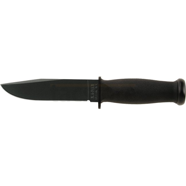 Un remake du toujours populaire et recherché couteau de la Deuxième Guerre mondiale du département de la marine, le Ka-Bar Mark I Plain Edge avec une finition en époxy noir non réfléchissant. Forme ovale classique durable et modernisée avec un matériau Kr