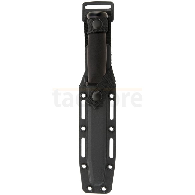 Un remake du couteau toujours populaire et recherché délivré au Département de la Marine pendant la Seconde Guerre mondiale, le Mark I dispose d'une lame noire non réfléchissante recouverte de poudre époxy. Les tests prouvent que la finition est plus durable que jamais. La forme ovale classique du KA-BAR original reste et a été modernisée avec un matériau presque imperméable à la sueur, aux produits chimiques, à l'eau et à l'usure - Kraton G. Tang estampillé USN. Gaine en plastique dur compatible MOLLE incluse. Fabriqué aux Etats-Unis.