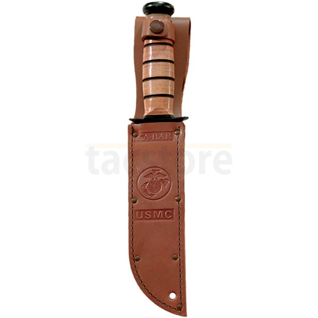 Couteau de taille pratique avec lame de 5.25" / 133 mm destiné à toutes les utilisations utilitaires. Une lame partiellement dentelée facilite la coupe des boucles et des matériaux synthétiques. Tang estampillé USMC. Fourreau en cuir incluse.