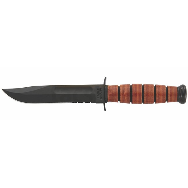 Couteau utilitaire militaire Ka-Bar Short à lame dentée et étui en cuir - USMC