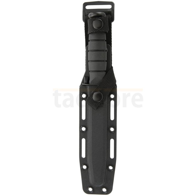 Une lame Tanto compacte et solide est extrêmement robuste et appropriée pour percer les matériaux les plus résistants. Tang estampillé USA. Gaine en plastique dur compatible MOLLE incluse. Fabriqué aux Etats-Unis.