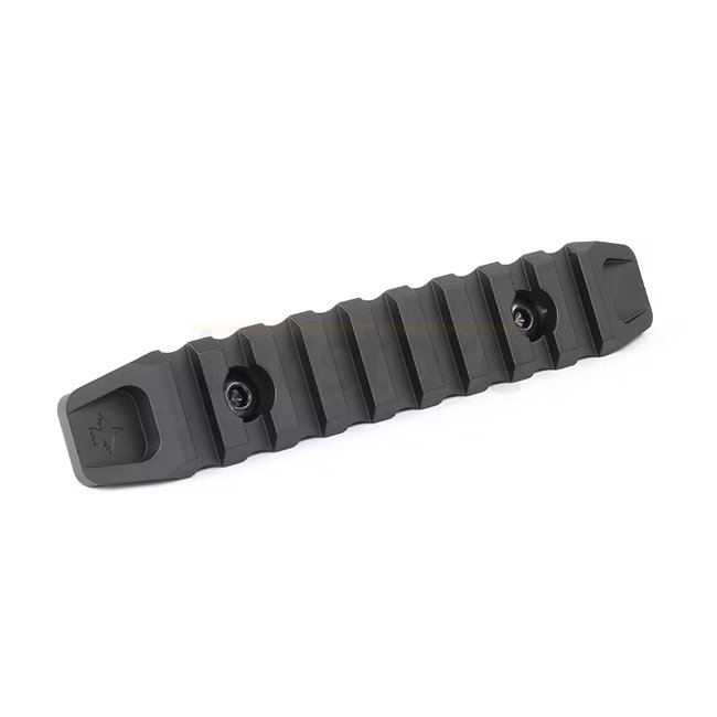 KRUK 9 Emplacements Rail Picatinny Biseaux Latéraux M-LOK - Noir : Améliorez votre arme à feu avec ce rail Picatinny élégant et pratique comprenant 9 emplacements, des biseaux latéraux et une compatibilité M-LOK, le tout dans une finition noire élégante.