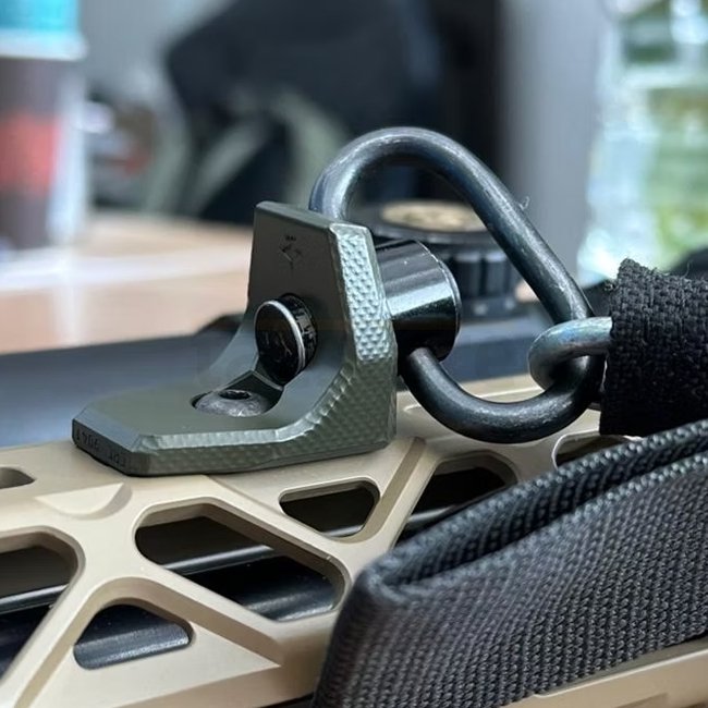 Le CRC 9041 est une butée de main compacte avec douille QD intégrée, conçue pour les garde-mains compatibles M-LOK. Elle améliore le contrôle de l’arme et le positionnement de la main tout en offrant un point de fixation pour sangle à détachement rapide. Usinée en aluminium avec un revêtement céramique Cerakote, elle est à la fois résistante et légère.