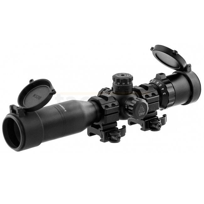 Leapers 3-12x32 1 pouce Mil-Dot BugBuster Compact Scope est une lunette polyvalente avec une plage de grossissement de 3-12x, un diamètre de lentille objective de 32 mm et une réticule Mil-Dot. Il offre un large champ de vision de 3-10m / 100m, une gradua