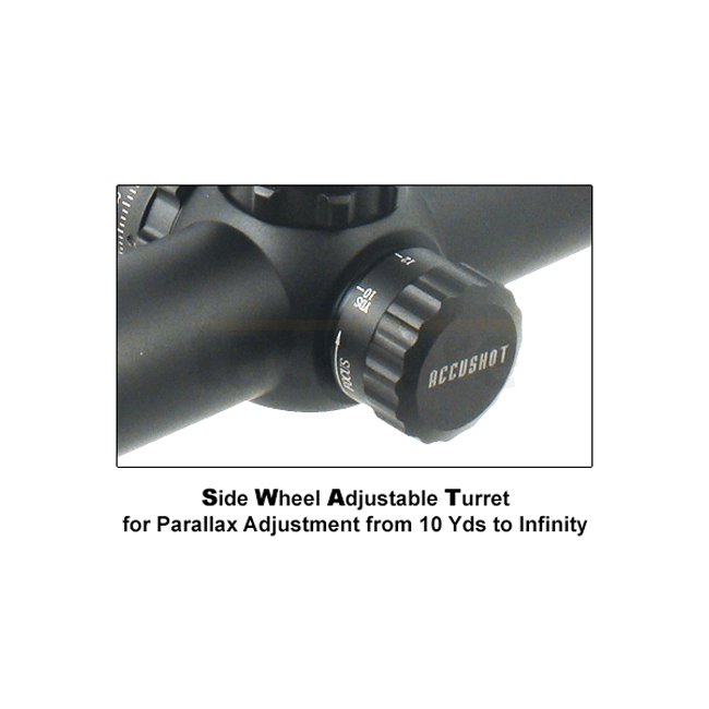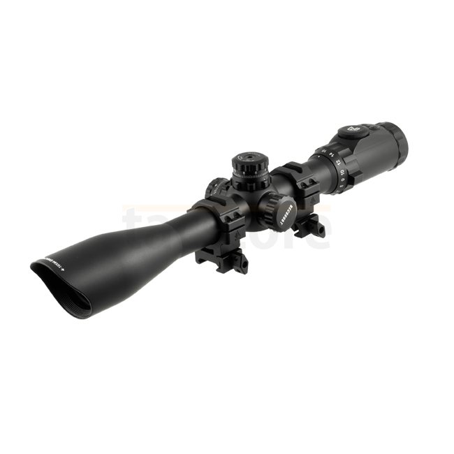 Leapers 4-16x44 30mm AOIEW Accushot Premium : Grossissement 4-16x, Lentille objective de 44mm, Dégagement oculaire de 81-76mm, Champ de vision de 24.4-6.8m, Diamètre du tube 30mm, Réticule Mil-Dot Dart, Réglage 1/4 MOA, Plan focal Second Plan Focal, Rétic