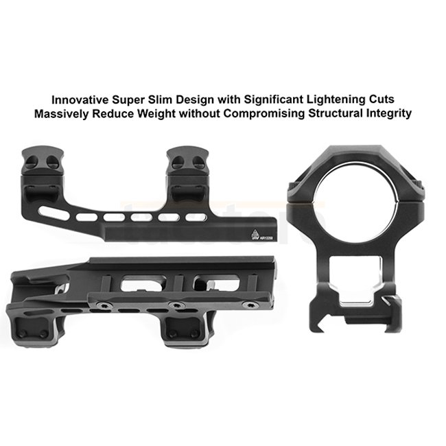 Hauteur de la selle de 22 mm et convient aux optiques avec un diamètre de tube de 1 pouce / 25.4 mm et un diamètre de lentille externe jusqu'à 69 mm.