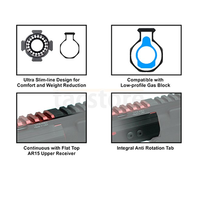 Leapers AR-15 15" Garde-main flottant super mince Free Float M-LOK en Noir/Rouge - Fabriqué en aluminium 6061-T6, mesurant 388.6x38.9x50.3mm, pesant 363g.