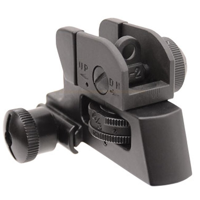 Compact et fiable, le viseur arrière détachable Leapers avec des caractéristiques ajustables, parfait pour montage Picatinny. Fabriqué en aluminium léger, mesurant 71 x 46 x 48mm et pesant 150g.