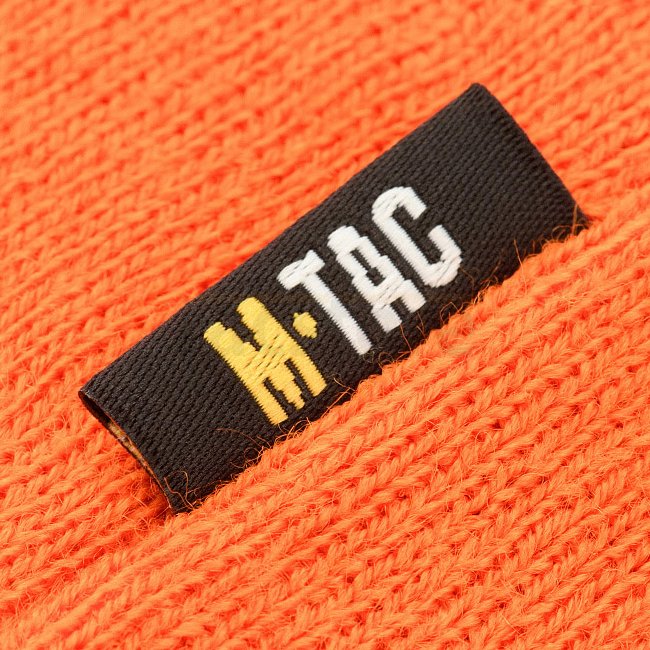 Bonnet tricoté fin M-Tac en acrylique de couleur orange vibrant. Fabriqué en 100% acrylique. Disponible en deux tailles : S/M (55-58cm) et L/XL (59-62cm).