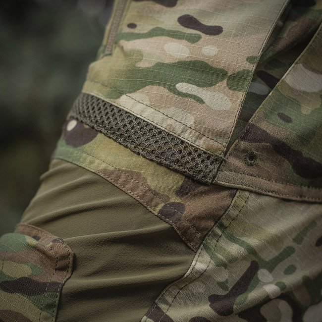 Fabriqué en tissu américain NyCo Extreme durable (57% nylon, 43% coton), ce tissu léger est environ trois fois plus résistant à la déchirure, 10 fois plus respirant et sèche plus rapidement que le tissu NyCo ordinaire. La caractéristique de conception de ce modèle réside dans les inserts en matériau élastique au niveau de la taille, des poches latérales du pantalon, de l'aine et autour des genoux. Pour cette raison, le pantalon ne limite pas la liberté de mouvement : il est confortable pour sauter, courir, se pencher, s'accroupir et se déplacer sur un terrain accidenté.