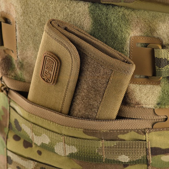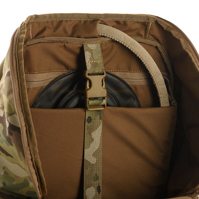 Le sac à dos Elite Small Gen.II s'ouvre comme une valise pour faciliter le rangement. Sur les côtés, il y a des poches en filet avec des cordons élastiques, ainsi que des supports latéraux en sangles élastiques, recouverts de rabats. Ils sont conçus pour mieux retenir le contenu des poches latérales. Les concepteurs ont ajouté des panneaux MOLLE sur les surfaces avant, ainsi que des cellules de sangle au bas du sac à dos pour installer des sangles de compression.