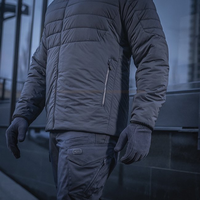 Restez au chaud et élégant avec la veste M-Tac Berserk en bleu marine foncé. Fabriquée en nylon léger et déperlant, isolée avec une isolation G-Loft. Présente des poches zippées, des poignets élastiques et un logo réfléchissant pour une meilleure visibili