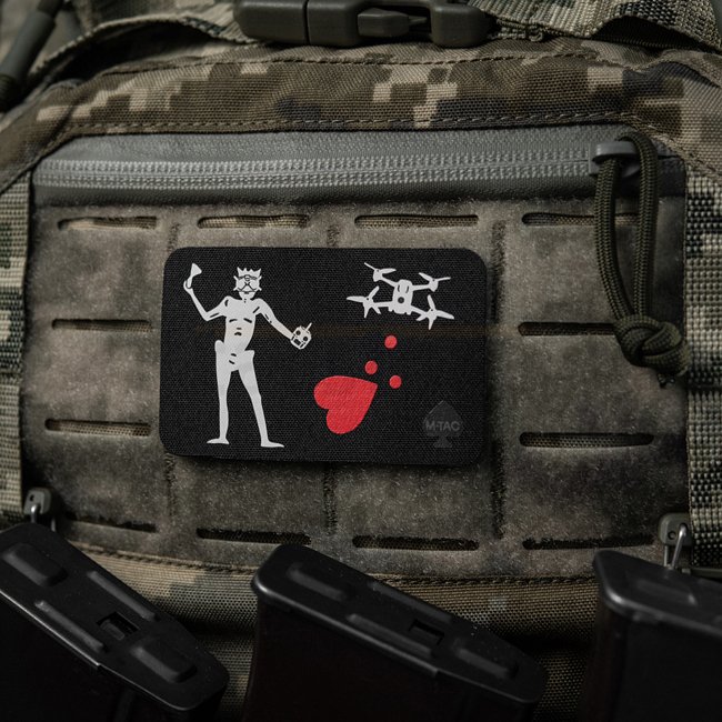 Patch M-Tac Barbe Noire Drone - Noir. Devant : Oxford 190g/m, Arrière : Surface à crochet. Dimensions : 80x50mm.