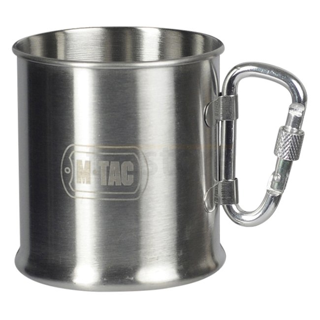 M-Tac Mug avec mousqueton - Mug en acier inoxydable avec un mousqueton, volume de 250 ml. Le mousqueton sert de poignée et s'attache à l'équipement. Matériau : Acier inoxydable 201. Dimensions : 72 x 76 mm.