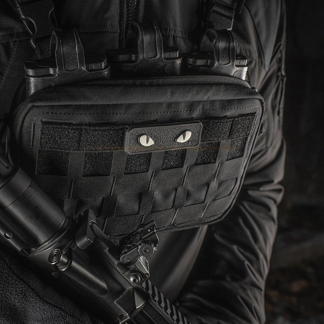 M-Tac Cat Eyes Patch en caoutchouc 3D GID - Noir. Devant : Caoutchouc, Derrière : Surface à crochet. Dimensions : 80 x 25 mm.