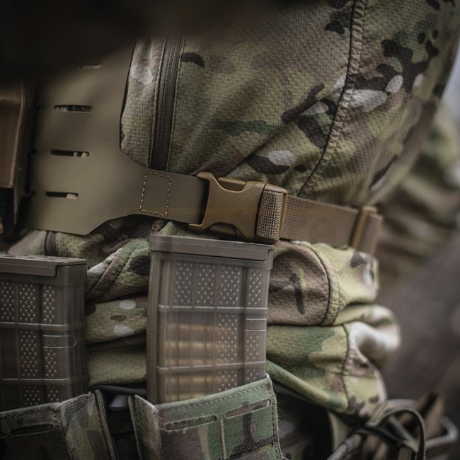 Fabriqué à partir d'un composite polymère moderne utilisant la technologie Laser Cut. Le matériau présente une résistance à l’abrasion, une résistance et une durabilité exceptionnelles. Son profil fin et un système de ceinture en forme de H sont les principaux atouts de ce modèle. Les pochettes se fixent facilement à l'aide de l'interface MOLLE. Les boucles sont des Fastex de Woojin, leader mondial dans la production d'accessoires.