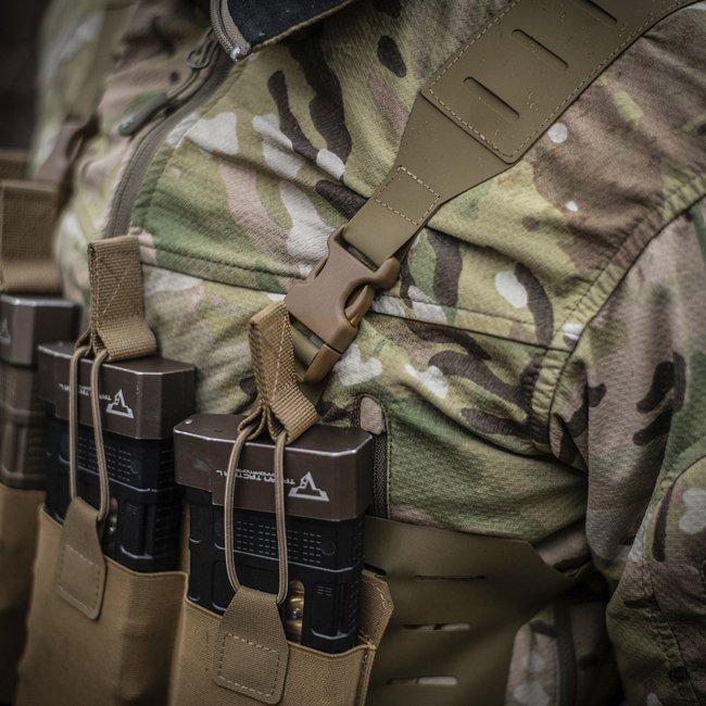 M-Tac Chest Rig Palianytsia Elite - Coyote : gilet porte-charge avec matériau composite polymère moderne, technologie de découpe laser, système de ceinture en H pour un placement optimal des accessoires. Boucles du leader mondial Woojin.