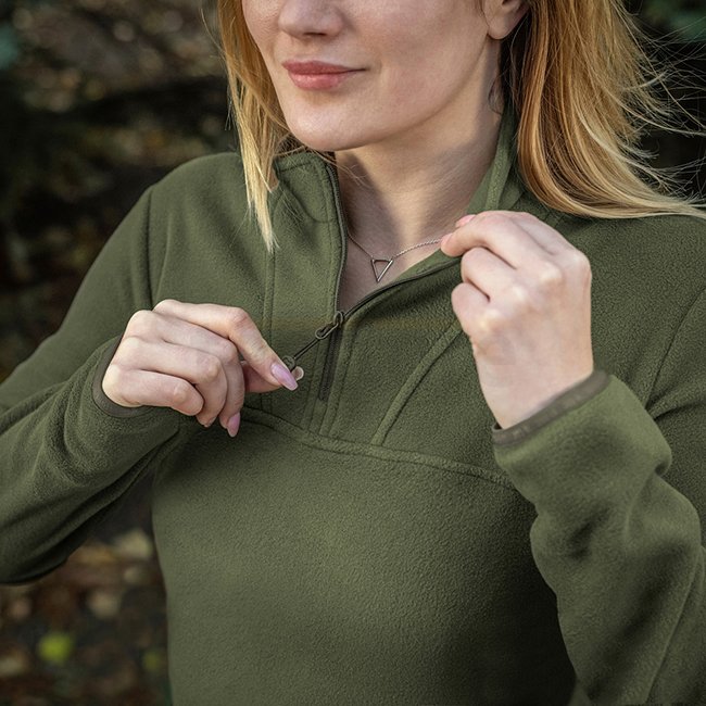Veste en polaire M-Tac Delta Polartec Femme - Olive armée - L : Veste en polaire chaude avec des trous pour les pouces pour réchauffer les paumes, agréable au toucher, à séchage rapide, coupe parfaite.