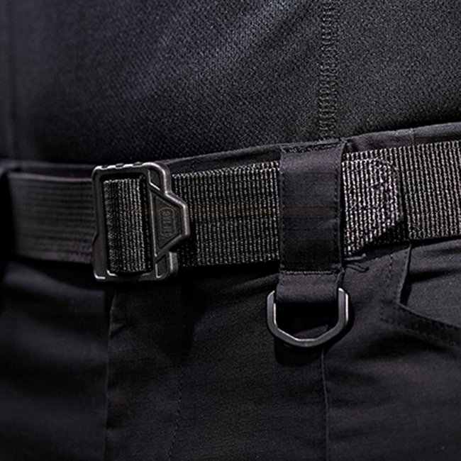 La ceinture tactique Double Duty est conçue pour une utilisation continue et à long terme. La ceinture se compose de deux sangles en nylon durables cousues ensemble avec un fil solide. La densité de la matière permet de porter étuis et pochettes à la ceinture. Il est fixé à la taille avec une boucle universelle en polymère durable.