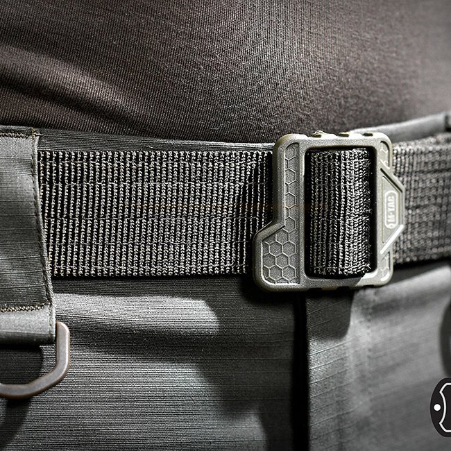 Ceinture tactique double fonction M-Tac Hex en Olive - S. Sangles en nylon durable cousues ensemble avec un fil solide pour une utilisation continue. Permet de porter des étuis et des pochettes. Boucle universelle en polymère durable pour un ajustement sû