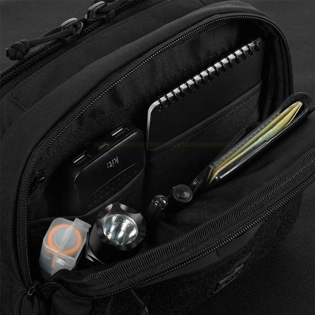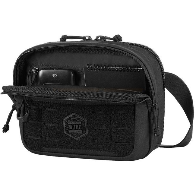 Sac EDC M-Tac Elite - Noir : Sac EDC polyvalent pour une utilisation quotidienne et tactique. Bien organisé avec un organiseur EDC dans la poche avant, un compartiment pour pistolet, et un système d'accès rapide. Convient aux utilisateurs droitiers et gau