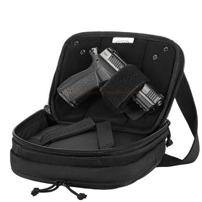 Le système de dégagement rapide permet un accès ultra-rapide à l'arme. Pour les droitiers, la sangle droite est fixée sur le côté droit de la poche arrière. Pour sortir l'arme, le sac s'ouvre avec la main gauche, tandis que la main droite prend en charge l'accès. Pour les gauchers, le système fonctionne à l'envers : la boucle gauche est attachée et la main droite ouvre le sac.