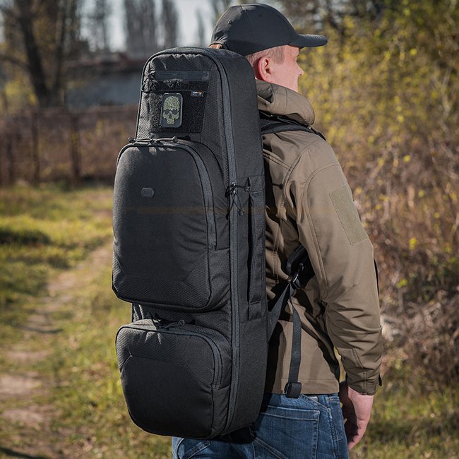 Sac à dos étui à fusil M-Tac 85cm Elite Hex - Noir est un choix fiable pour transporter des carabines AR-15 ou AK démontées. Il possède trois liens pour la sécurité de l'arme, un intérieur en boucle et crochet, plusieurs compartiments et un rembourrage en