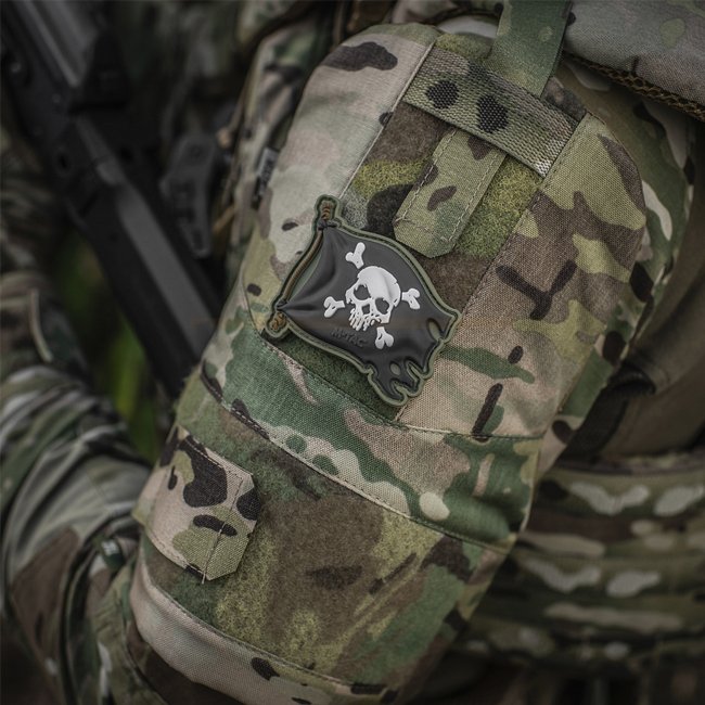 M-Tac Jolly Roger Écusson en Caoutchouc - Olive. Devant en PVC avec dos à surface crochet, 64 x 64 mm.