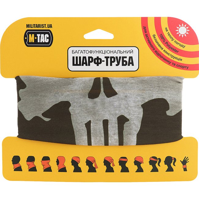 Cette écharpe tubulaire légère M-Tac en design Reaper Punisher est fabriquée en tissu 100% polyester. Facilement transformable en divers styles de couvre-chefs, y compris bonnet sous-casque, cagoule, bandana, chapeau, masque anti-poussière, écharpe ou ban