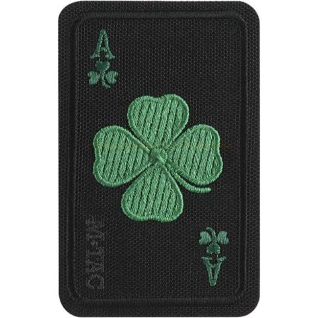 Écusson M-Tac Lucky Card brodé - Noir, fabriqué en matériau Cordura 500D à l'avant et surface arrière à crochet. Dimensions 80x50mm.