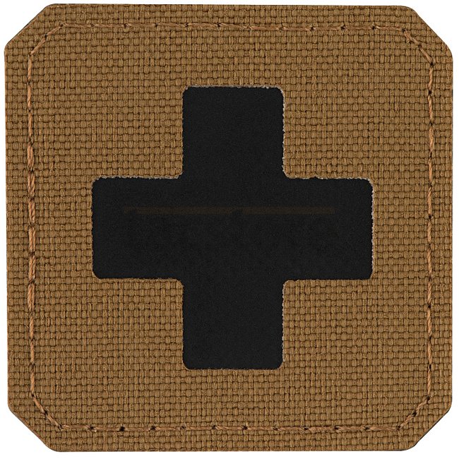 M-Tac Écusson Découpé au Laser avec Croix Médicale - Coyote / Noir, 45 x 45 mm, devant en Cordura 500D, dos avec surface auto-agrippante.